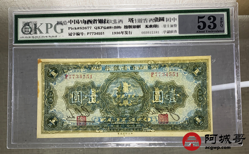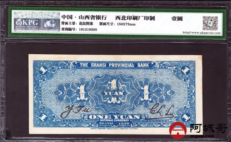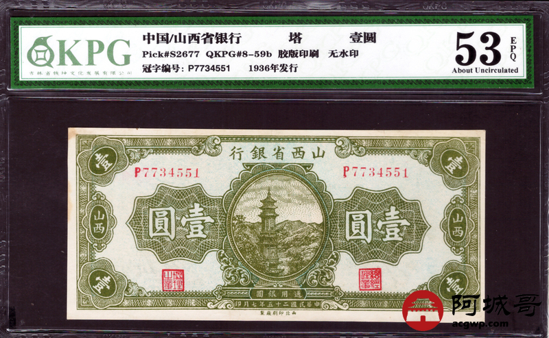 Lot:40 民国25年 山西省银行 壹圆 KPG 53EPQ