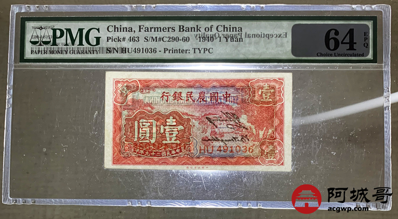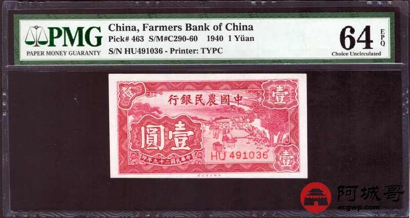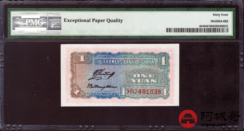 Lot:14 民国29年 中国农民银行 壹圆 PMG 64EPQ