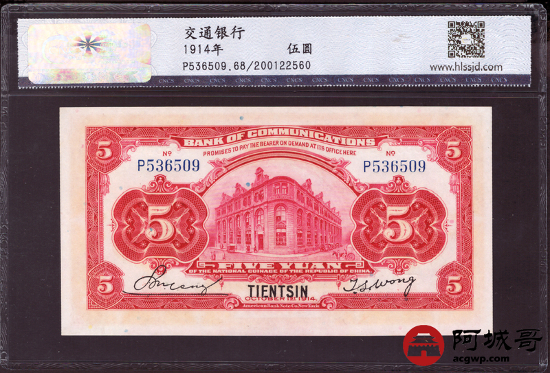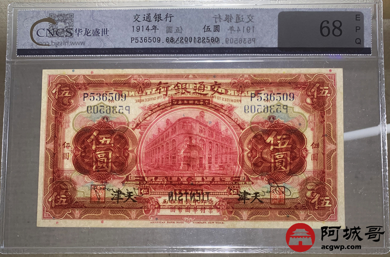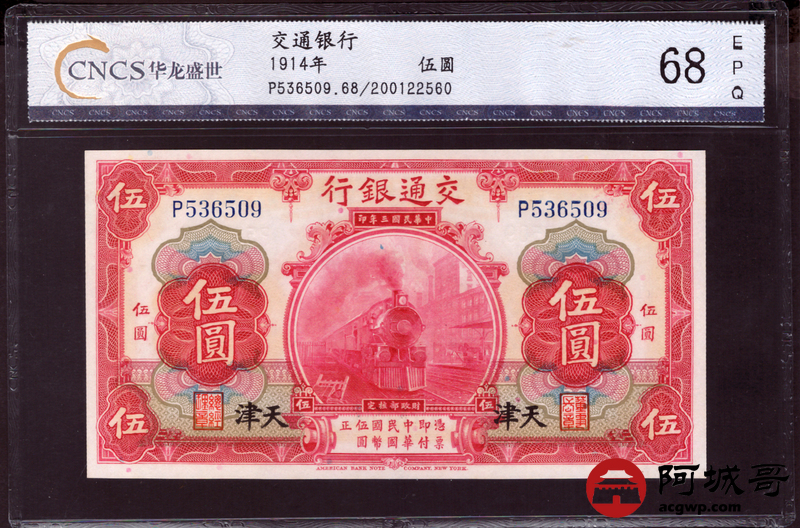 Lot:43 民国3年 交通银行 天津地名 伍圆 CNCS 68EPQ