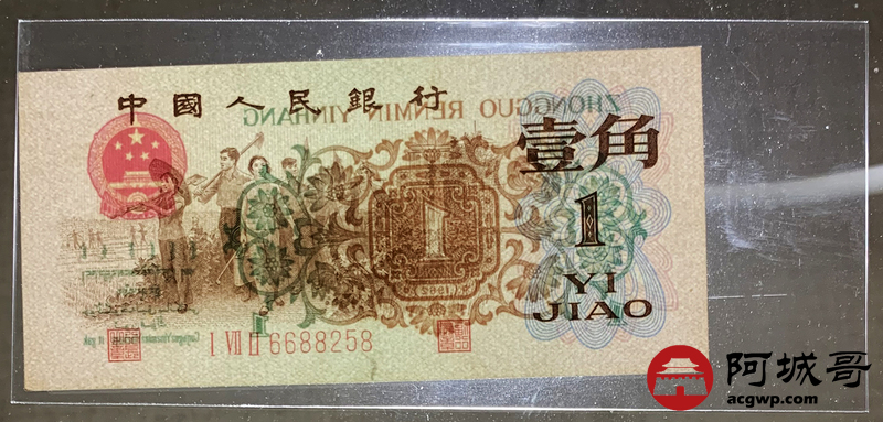Lot:10 三版 1962年 三版珍品 背绿壹角 好号无347尾号8 96成至全新