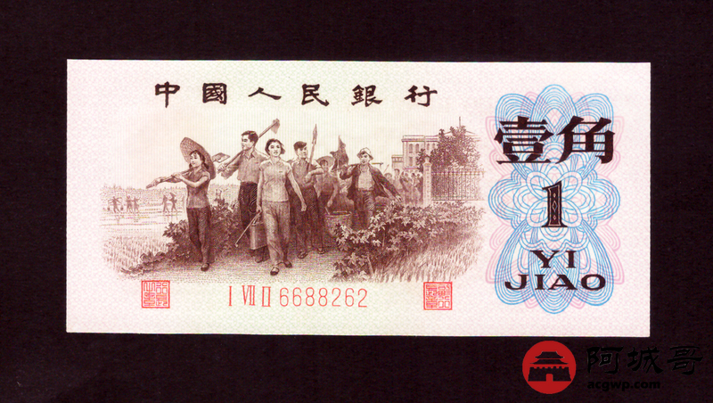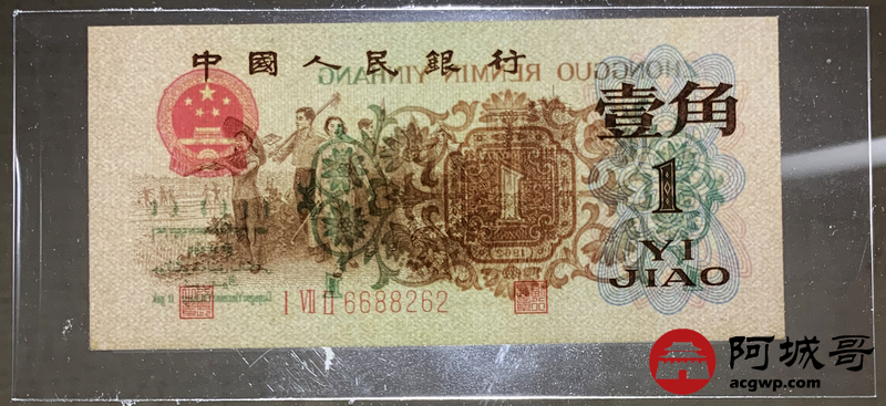 Lot:13 三版 1962年 三版珍品 背绿壹角 好号无347、朦胧号 95成至全新
