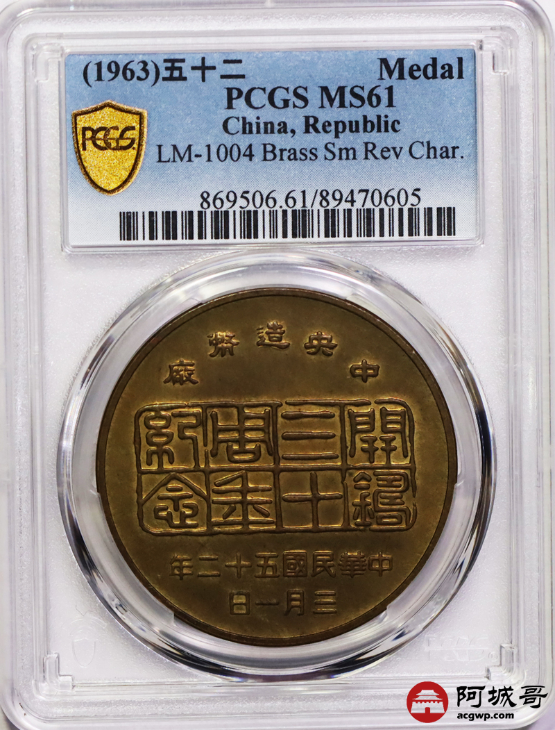 Lot:19 民国五十二年中央造币厂三鸟纪念章 PCGS MS61