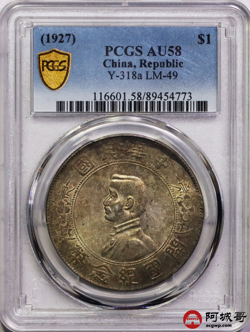 Lot:3 五彩转光 孙像小头壹圆 PCGS AU58