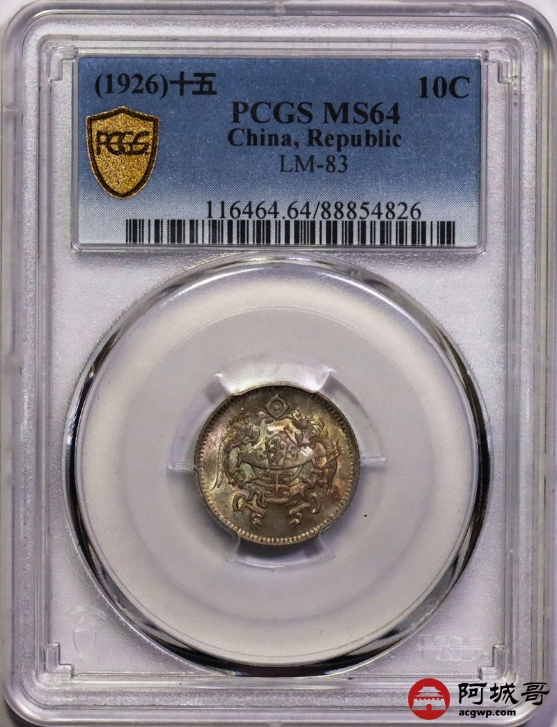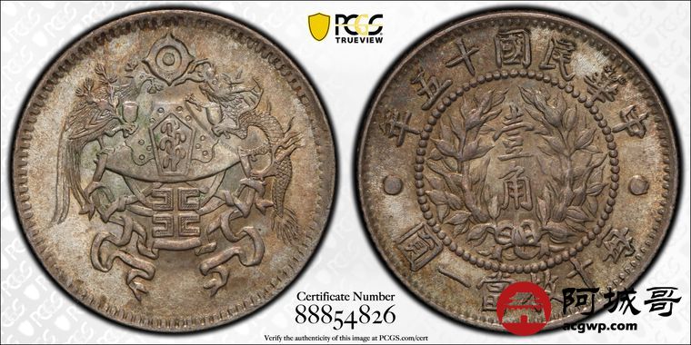 Lot:15 粉彩原光 民国十五年龙凤壹角 PCGS MS64