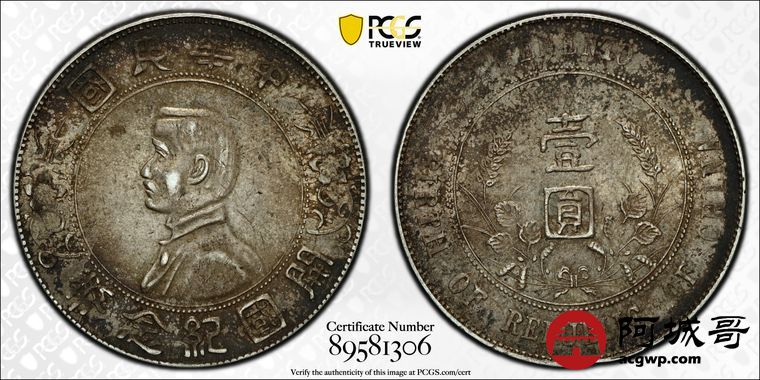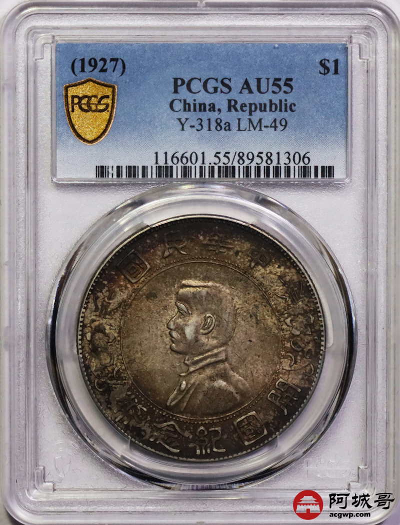 Lot:2 酱彩 转光 孙像小头壹圆 PCGS AU55