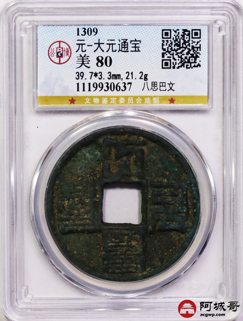 Lot:38 元-大元通宝 八思巴文 公博 美80