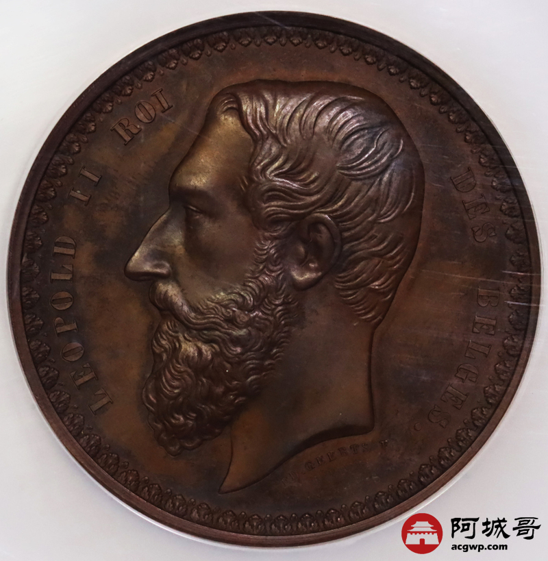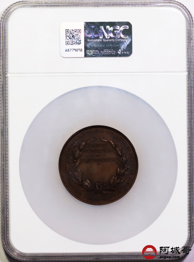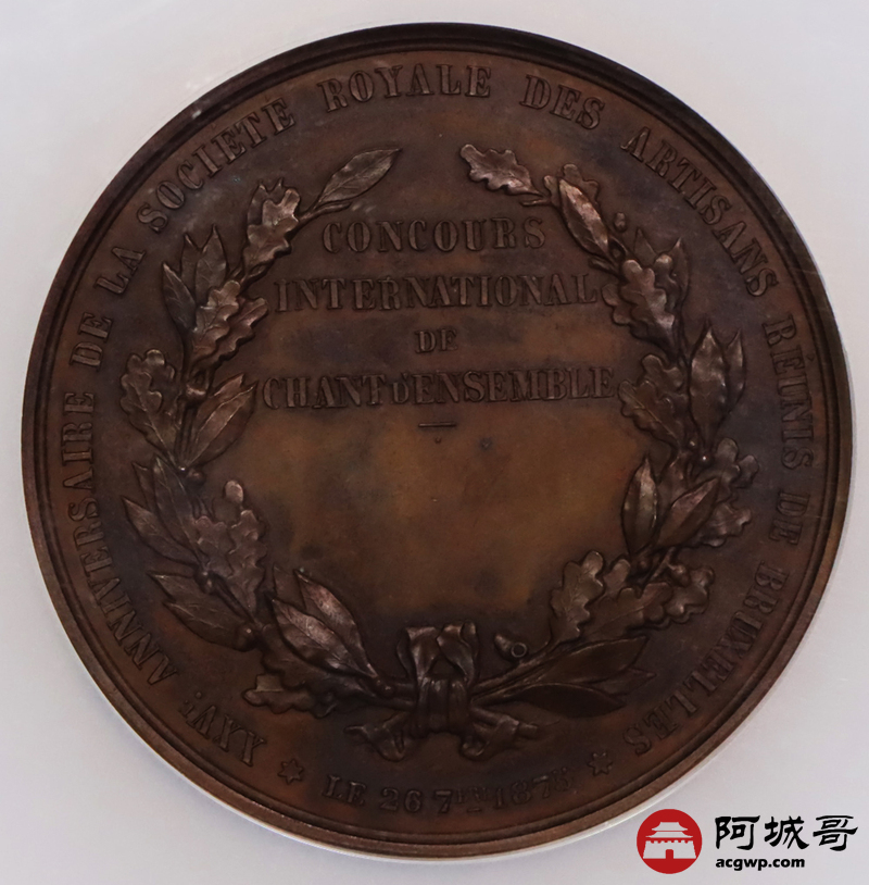 Lot:32 1875年比利时皇家协会成立25周年纪念章 NGC MS62BN