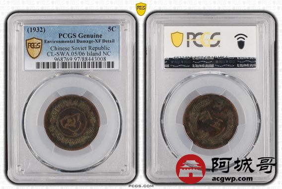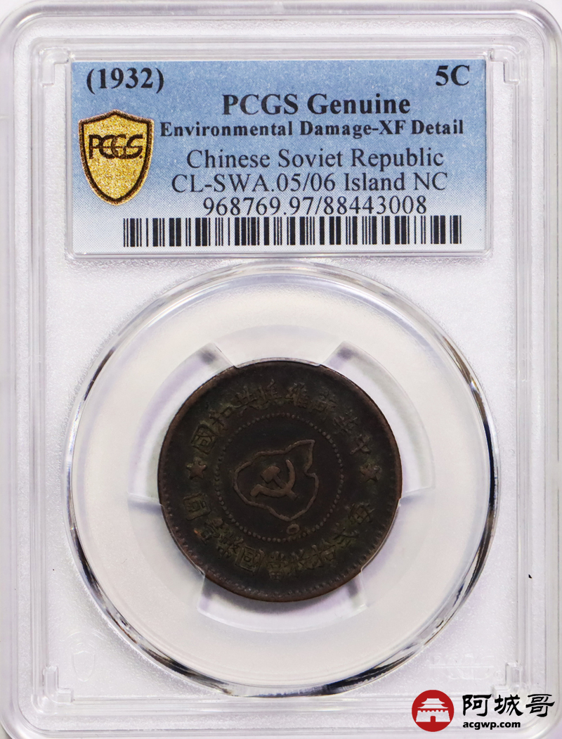 Lot:9 1932老包浆 苏维埃伍分 远岛 PCGS XF
