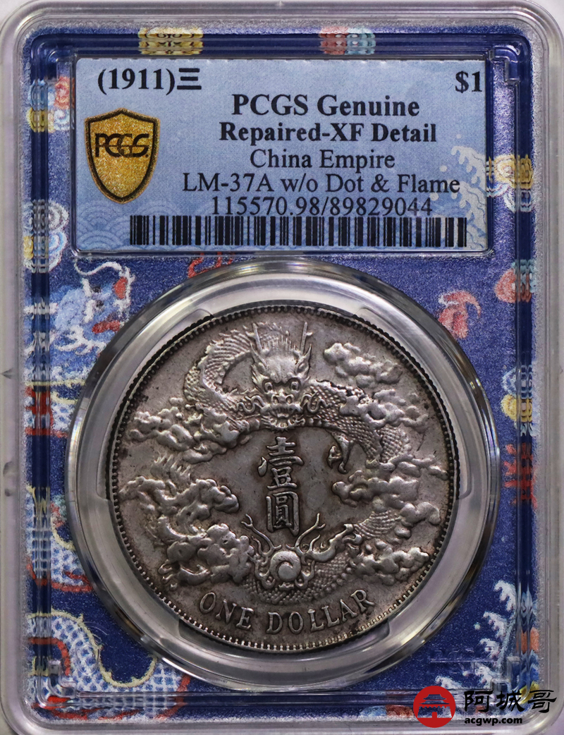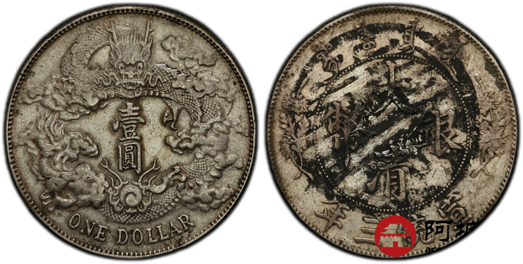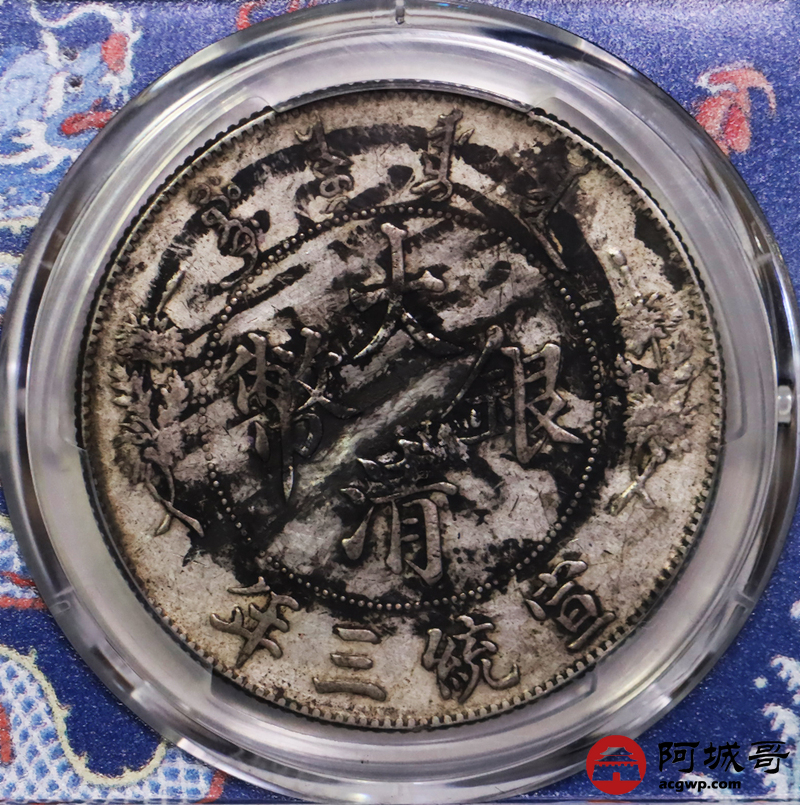 Lot:27 老包浆 大清宣三壹圆 寿字墨 PCGS XF