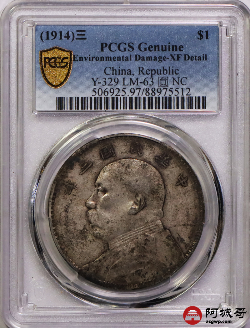 Lot:37 原味老包浆 三年大头壹圆 PCGS XF