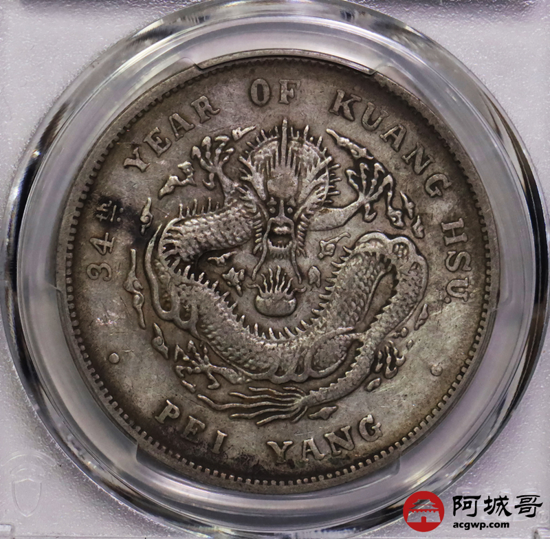 Lot:28 原味老包浆 北洋34七钱二分 小字版 PCGS VF