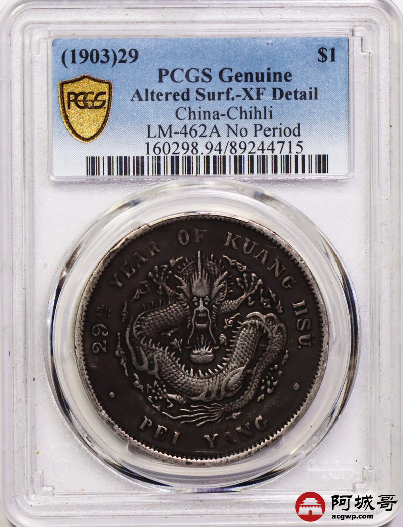 Lot:18 酱彩深打北洋29七钱二分 大字29艺术字 PCGS XF