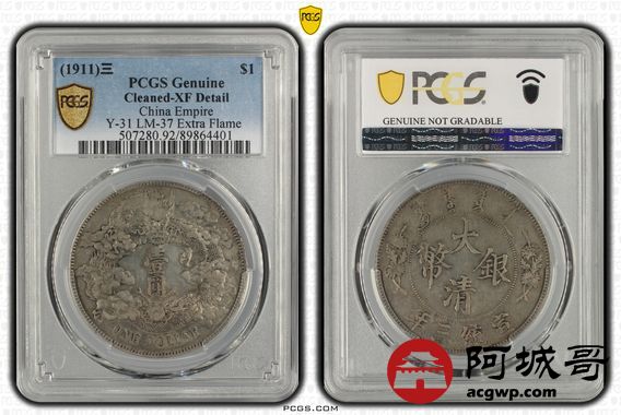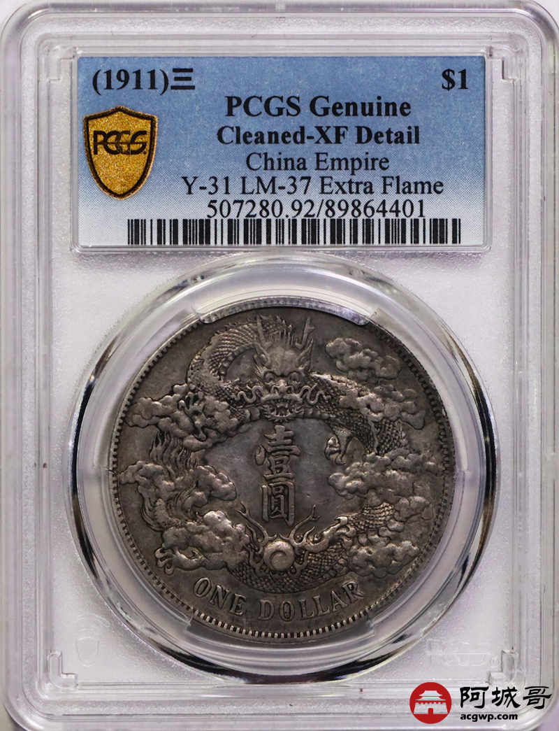 Lot:22 原味老包浆 大清宣三壹圆 PCGS XF
