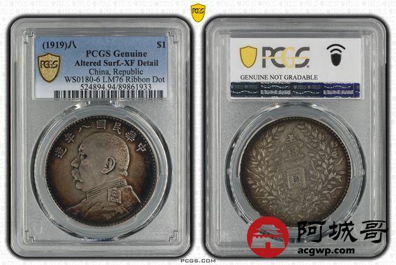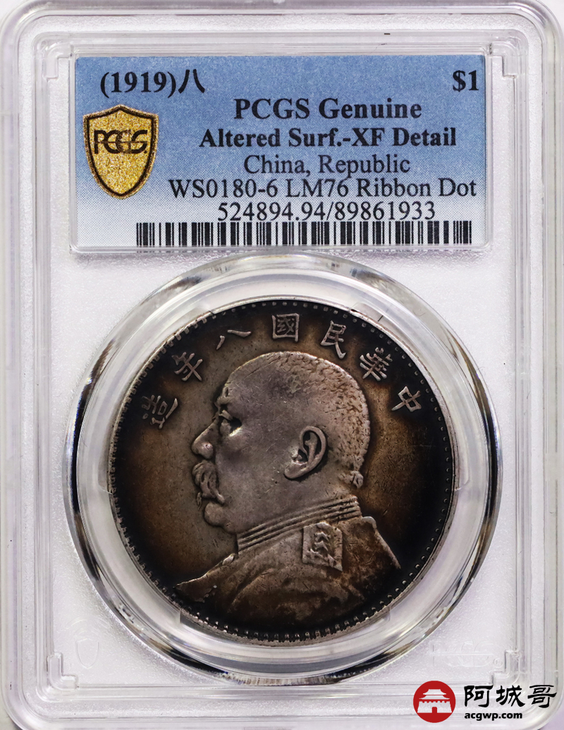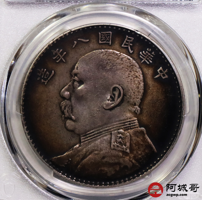 Lot:31 深打 酱彩包浆 八年大头壹圆 PCGS XF