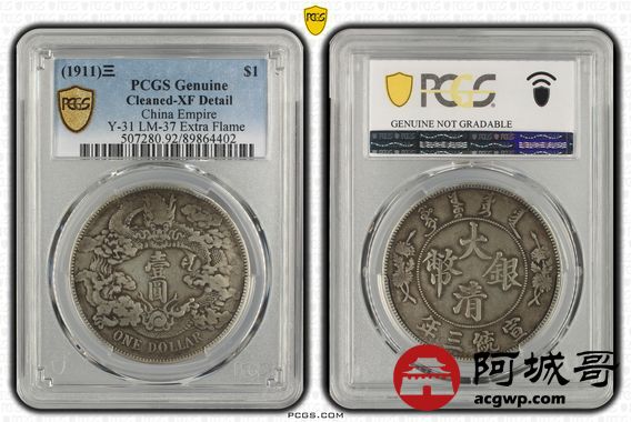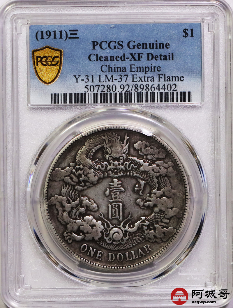 Lot:23 原味老包浆 大清宣三壹圆 PCGS XF
