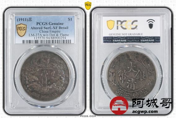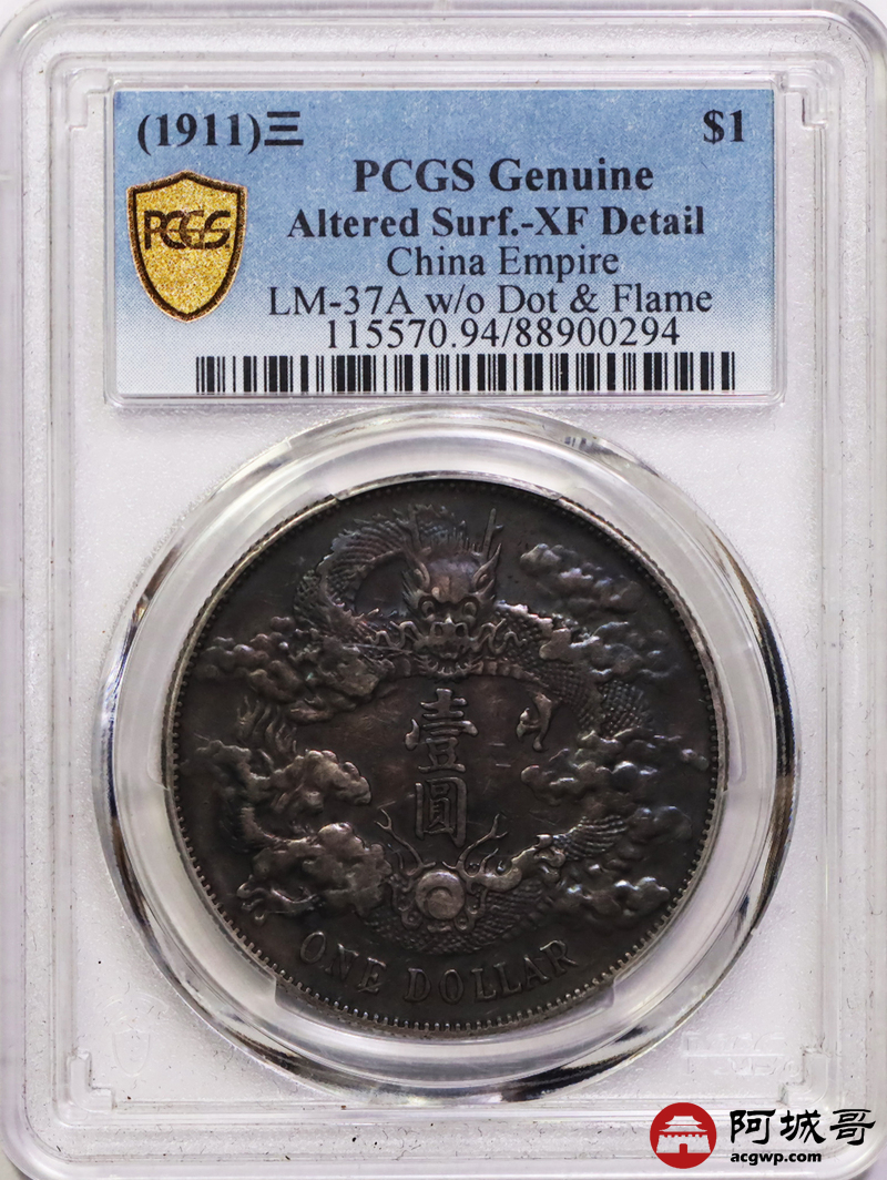 Lot:19 酱黑包浆 大清宣三壹圆 PCGS XF