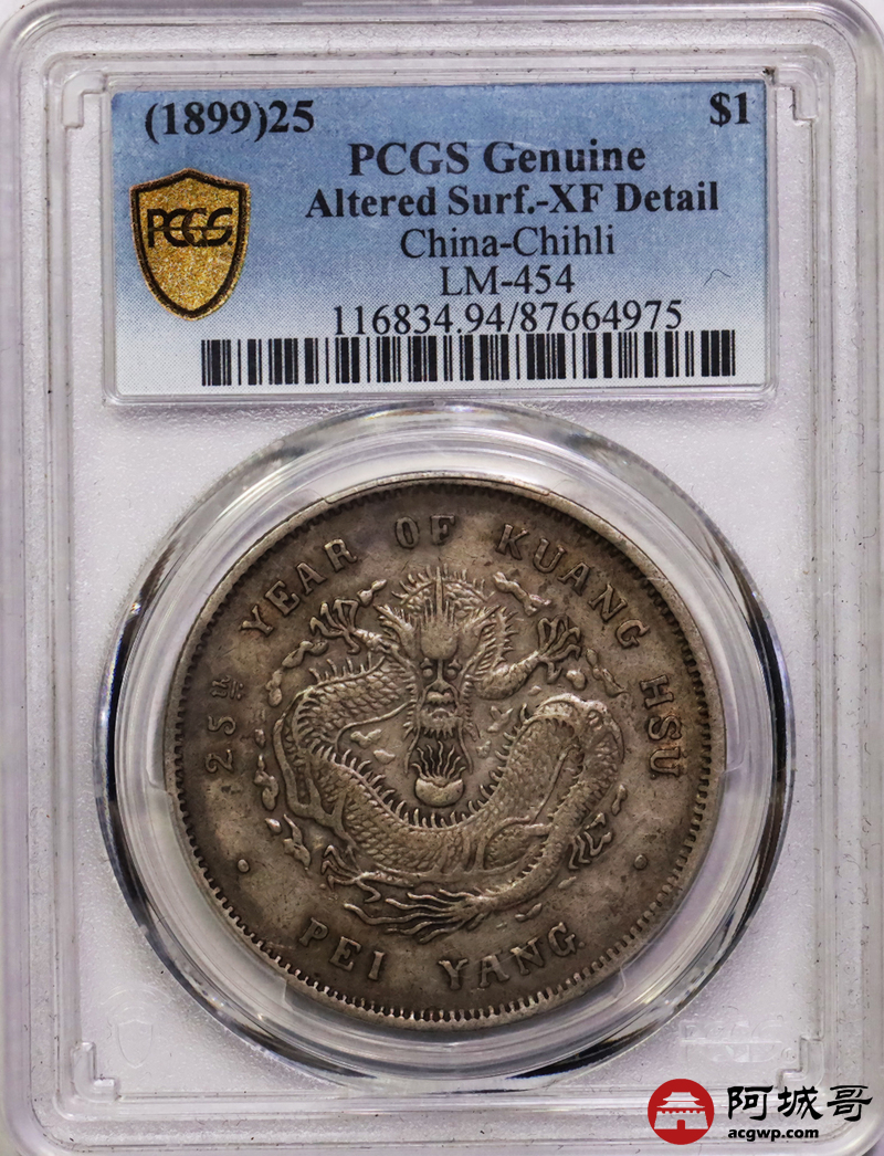 Lot:17 原味 北洋25七钱二分 PCGS XF