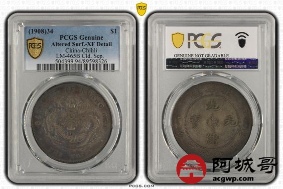 Lot:15 酱彩包浆 北洋34七钱二分 开云版 PCGS XF