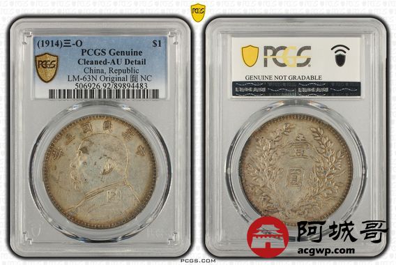 Lot:2 原味 黄油包浆 三年大头 O版春天版 PCGS AU