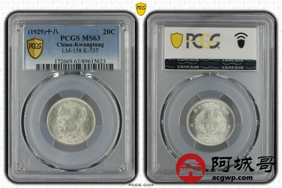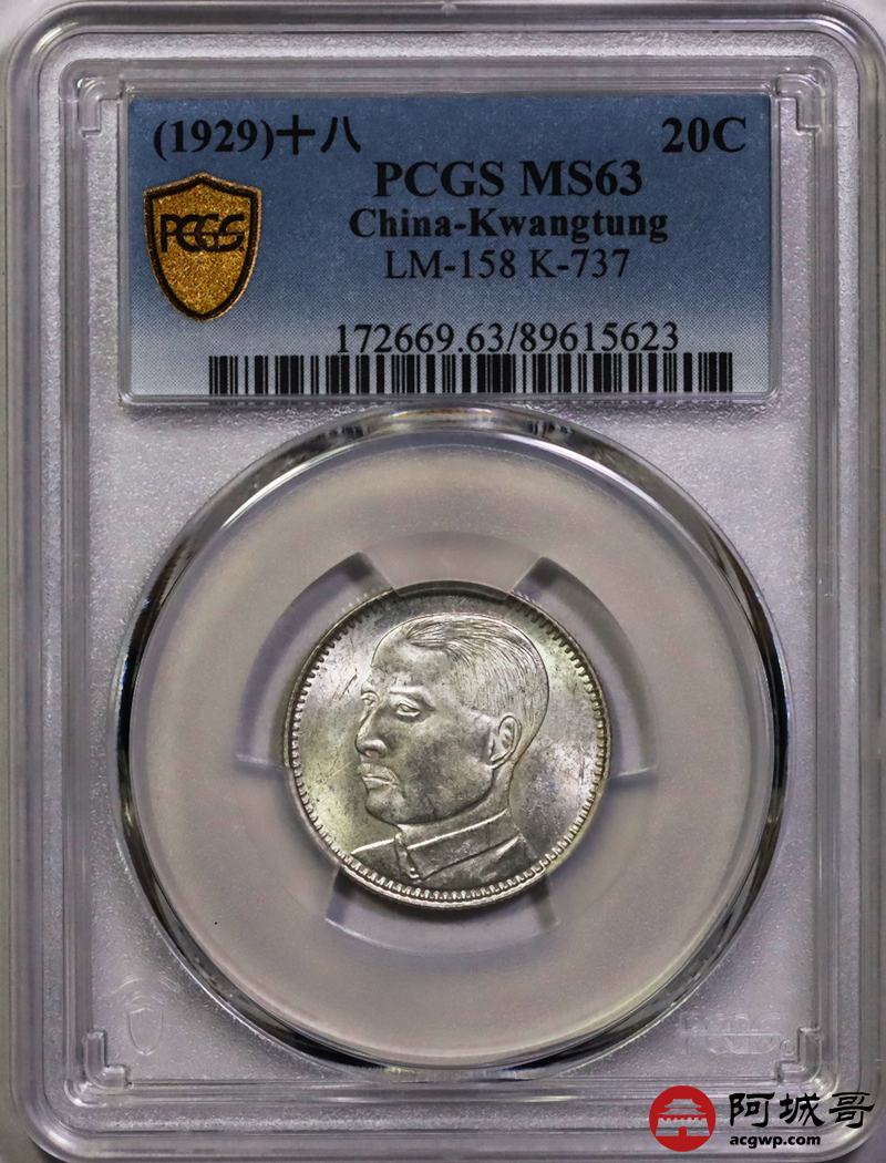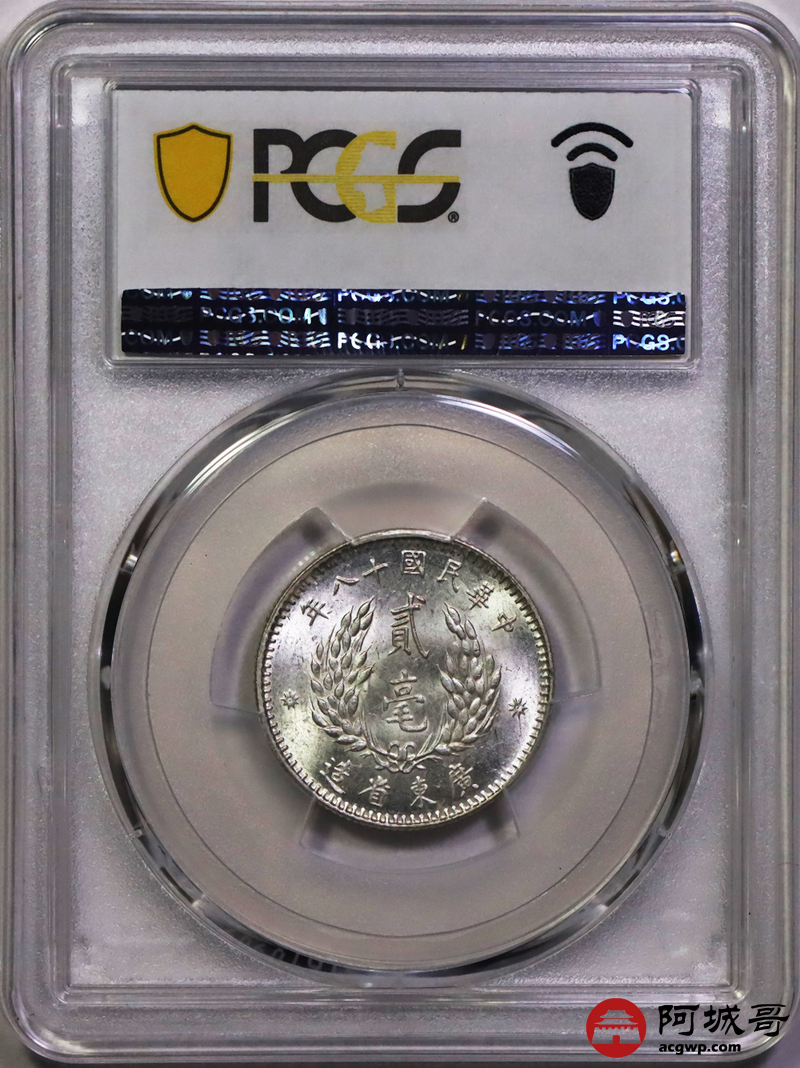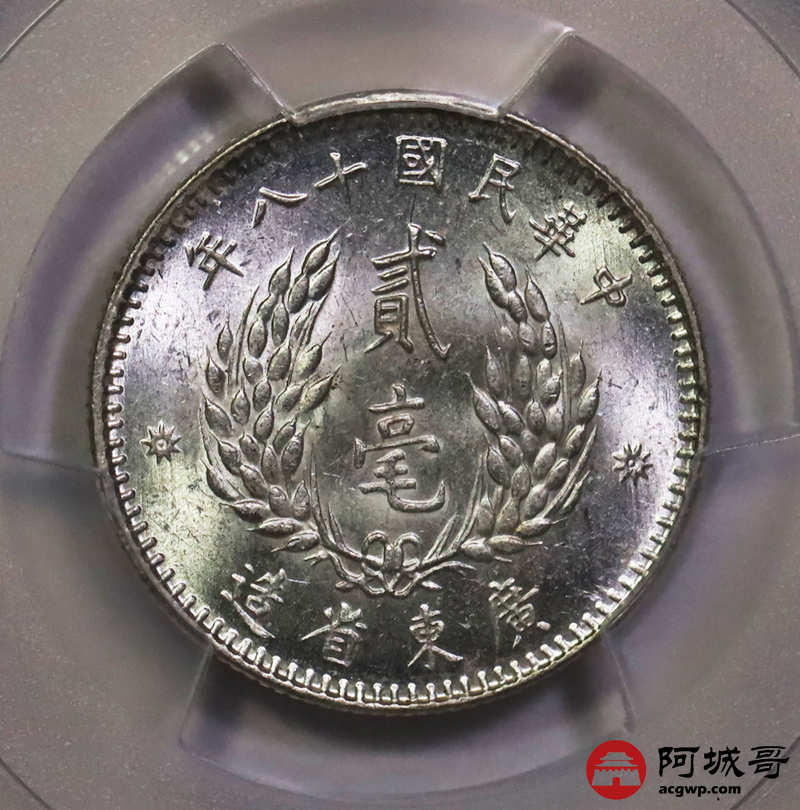 Lot:31 原色光 广东孙像贰毫 PCGS MS63