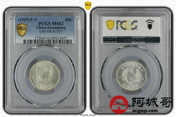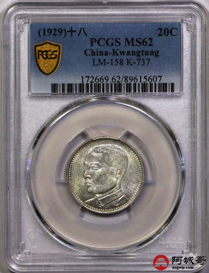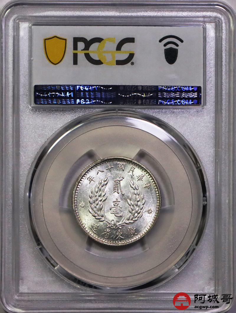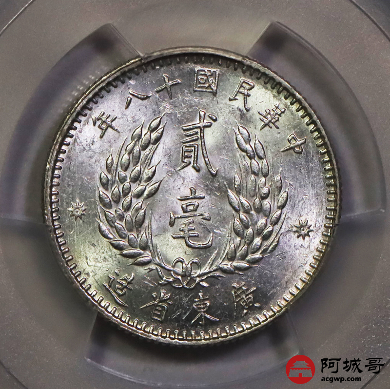 Lot:29 原色光 广东孙像贰毫 PCGS MS62