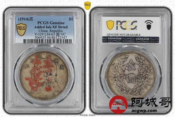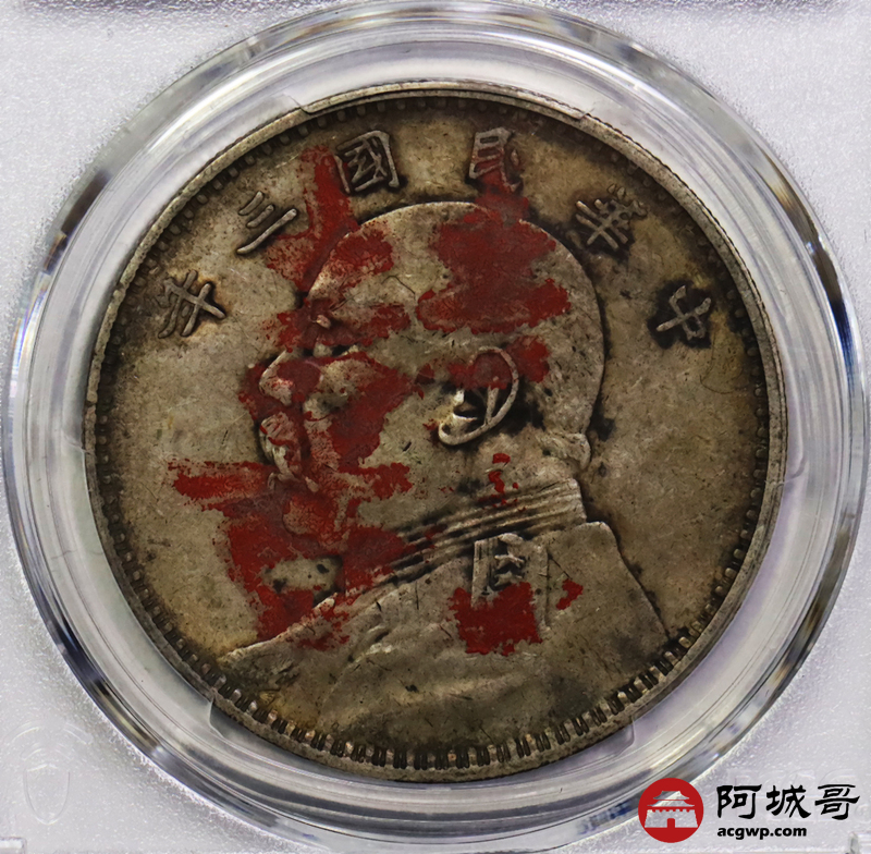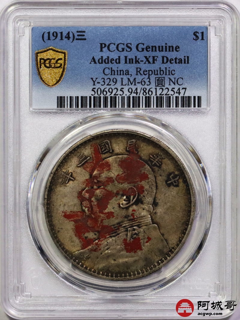 Lot:25 原味老包浆 三年大头 朱砂囍 PCGS XF