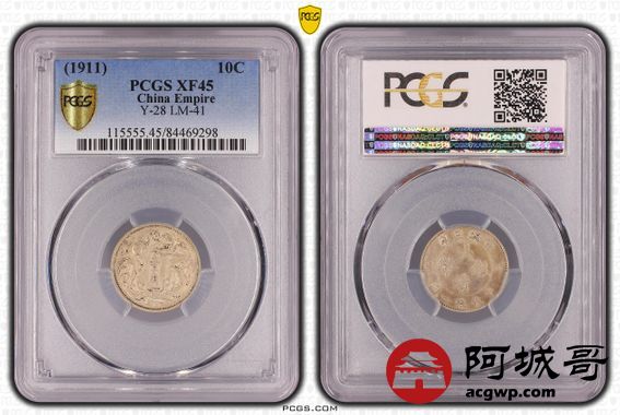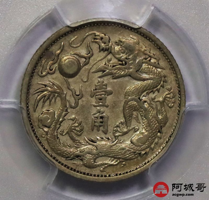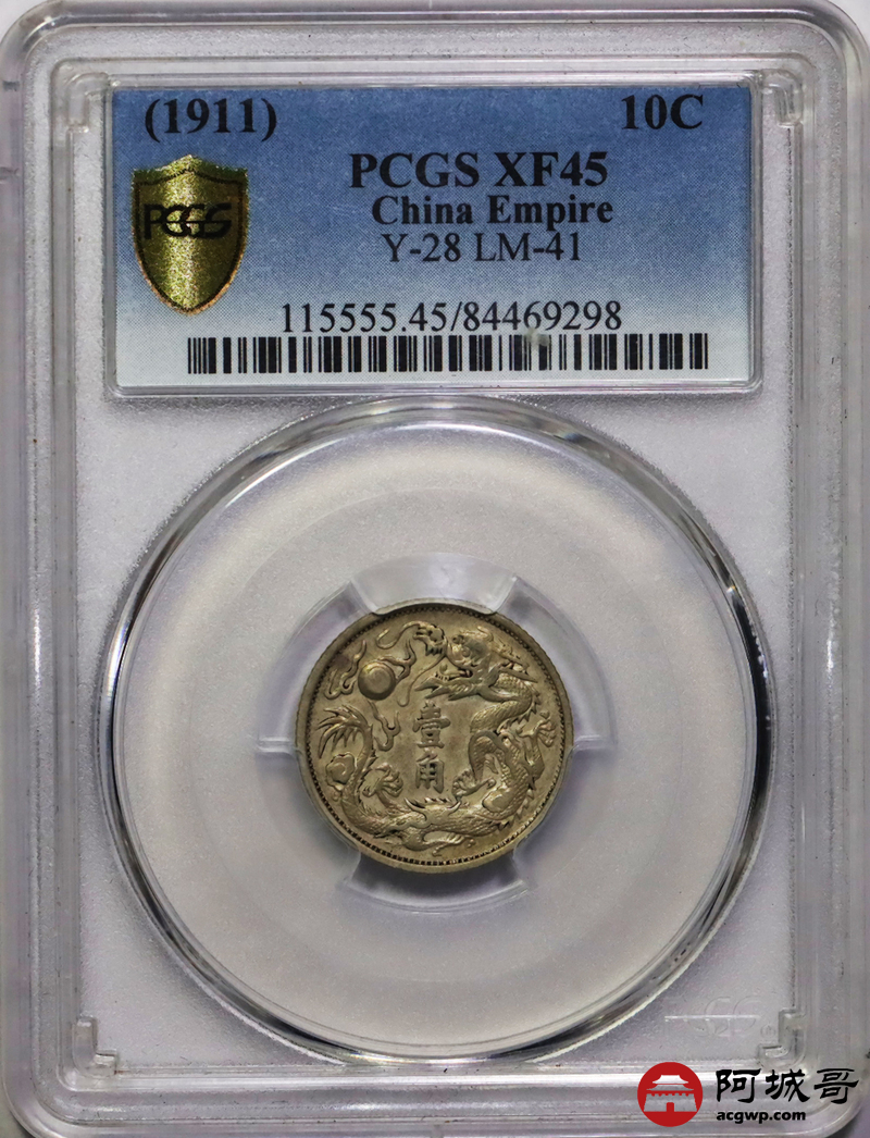 Lot:16 黄油金彩底板 大清立龙壹角PCGS XF45
