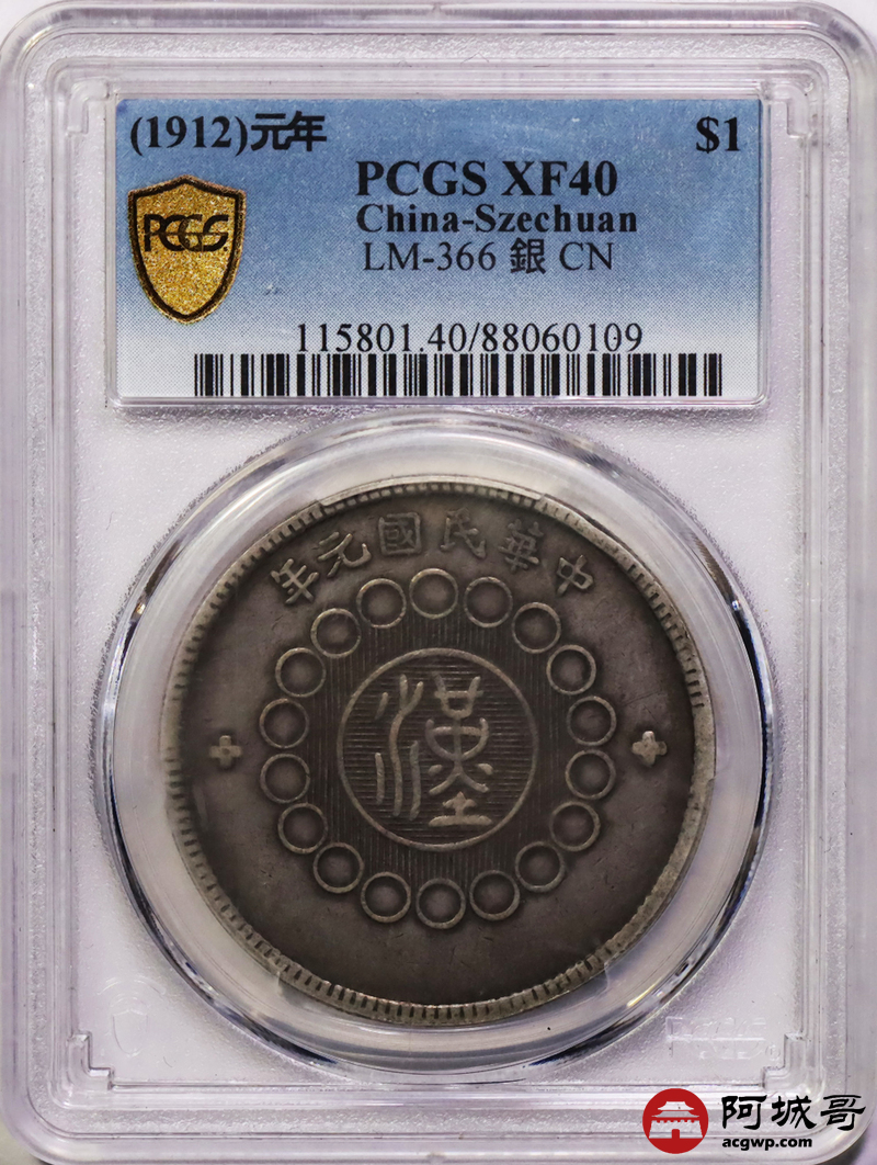 Lot:23 原味 包浆 四川军政府壹圆PCGS XF40 盒子雾化