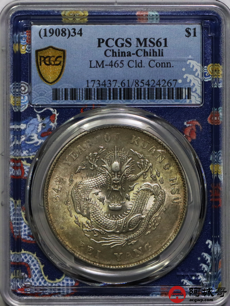 Lot:21 黄油原光 北洋34七钱二分 PCGS MS61