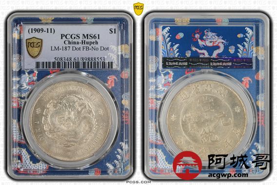 Lot:22 黄油原光湖北宣统七钱二分 PCGS MS61