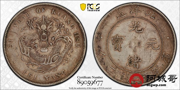 Lot:14 原味老包浆 北洋34七钱二分 PCGS XF45