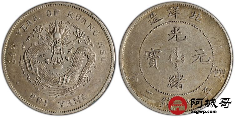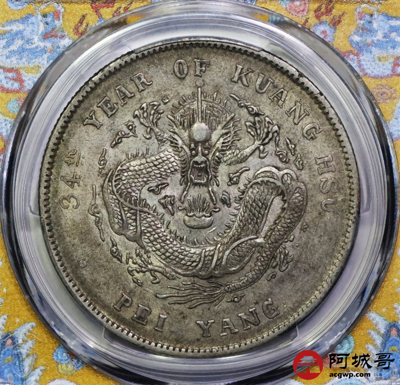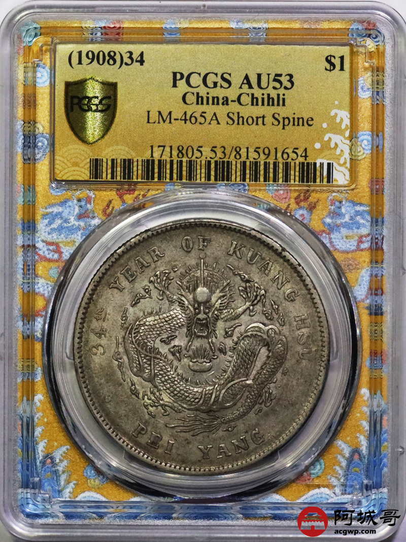 Lot:12 原味深打 北洋34七钱二分 短尾龙 PCGS AU53