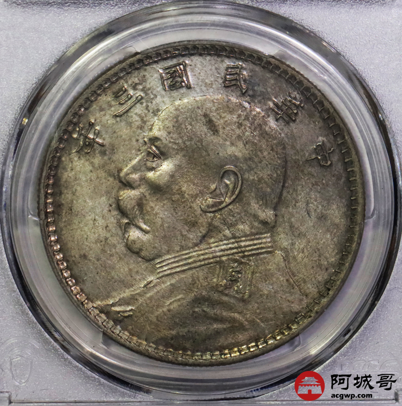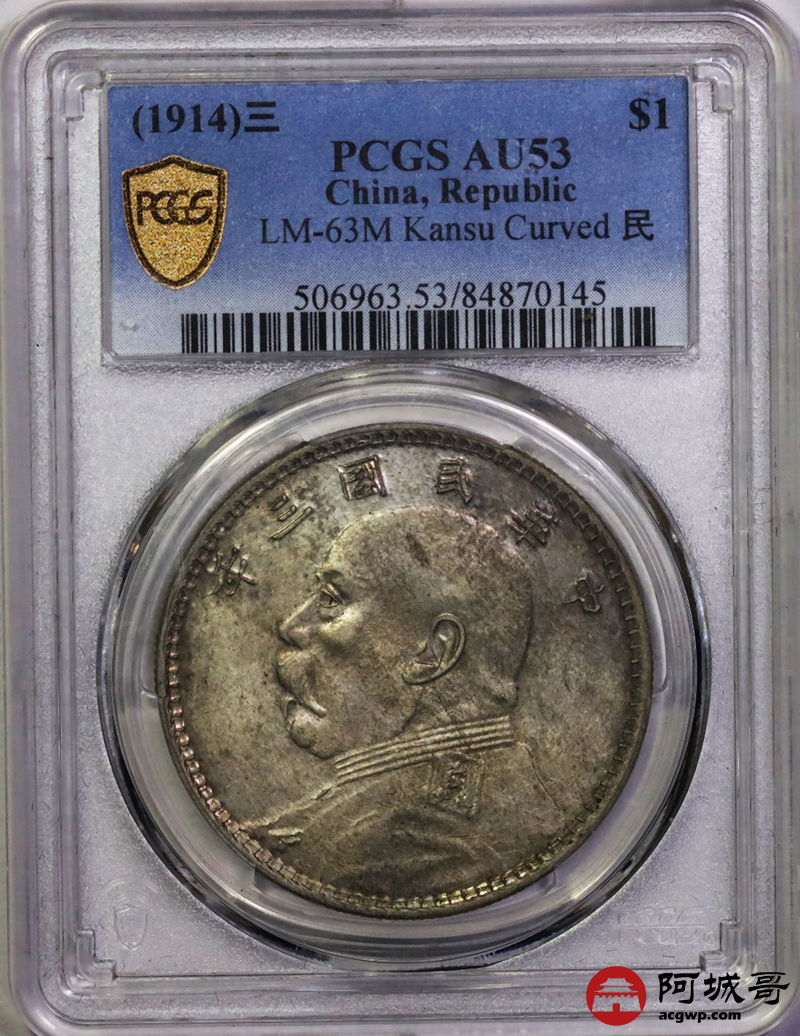 Lot:20 民国三年大头 甘肃曲笔民 大曲眼下点 PCGS AU53