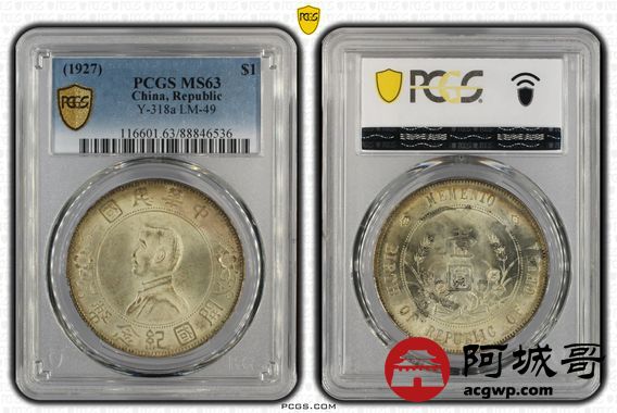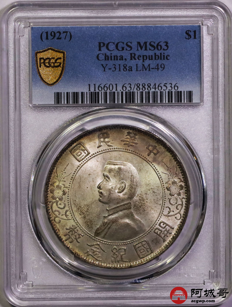 Lot:1 环彩 黄油原光 孙像小头壹圆 PCGS MS63