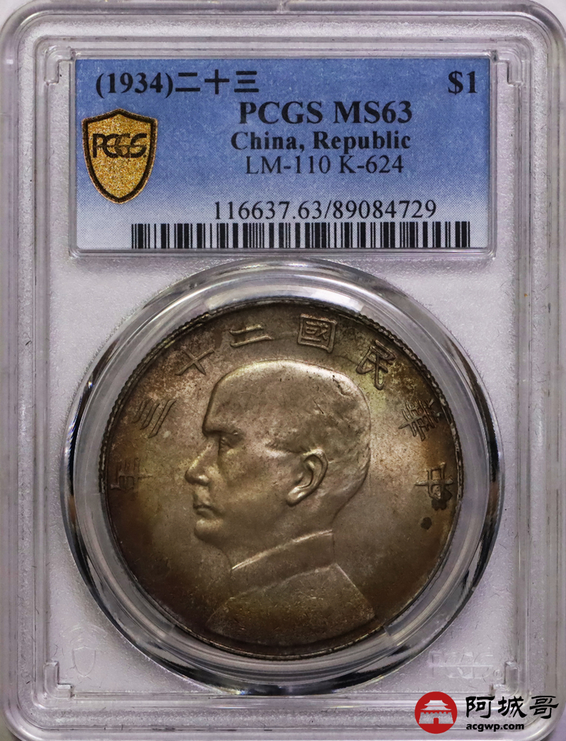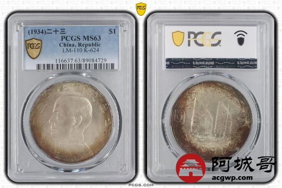 Lot:3 环彩 黄油原光 二十三年船洋 月亮版 PCGS MS63