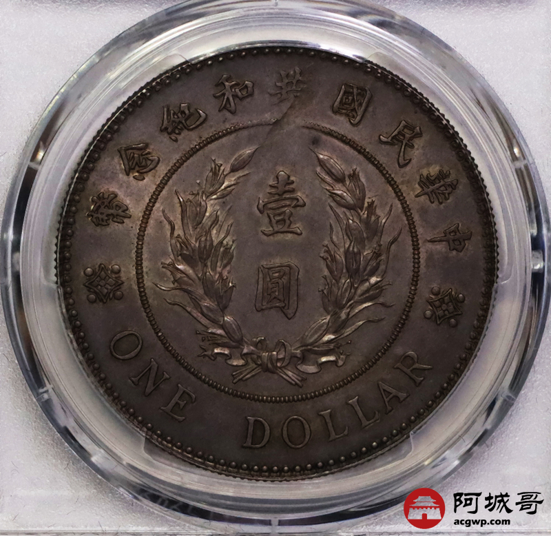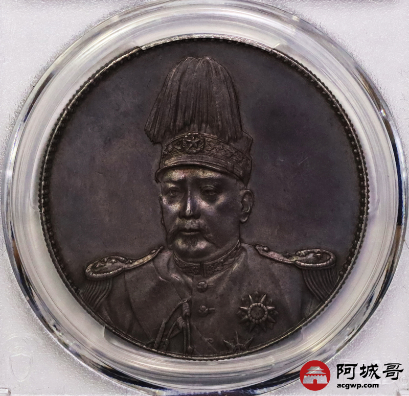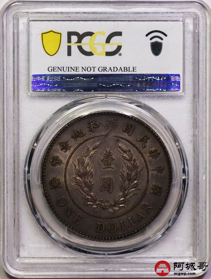 Lot:8 深打 咖啡老包浆 袁像共和纪念币 PCGS AU