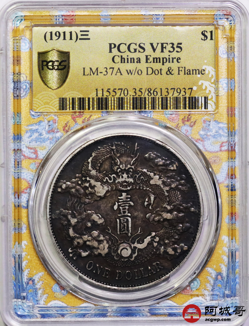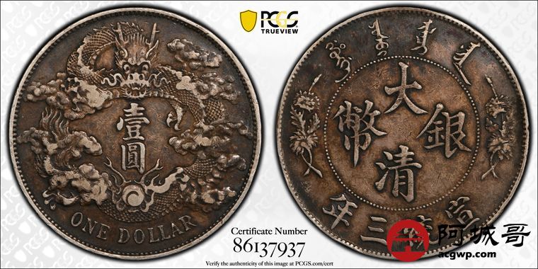 Lot:10 原味 传世老酱彩 大清宣三壹圆 PCGS VF35
