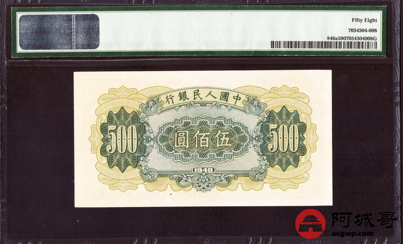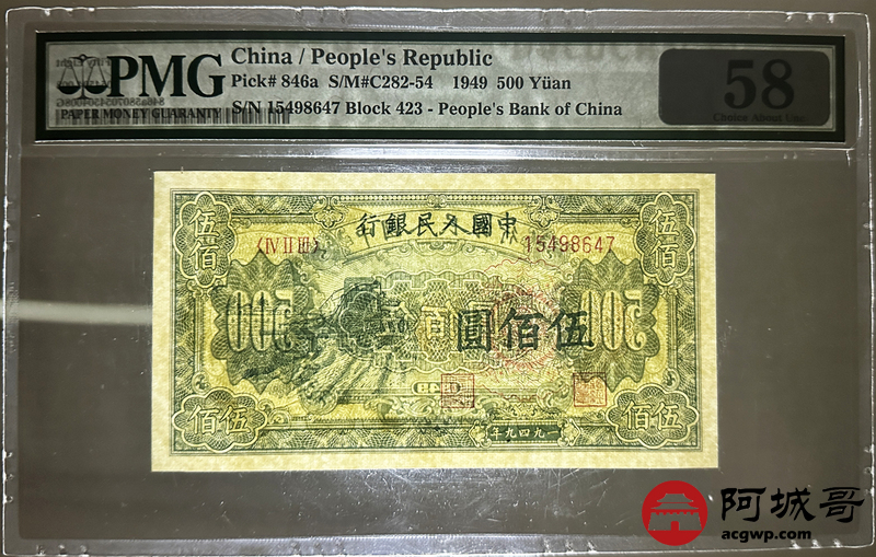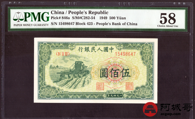 Lot:22 一版 1949年 伍佰圆 耕地机 PMG 58