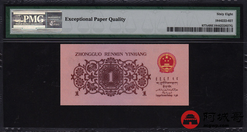 Lot:13 三版 1962年壹角蓝3冠平版 好号全程无4 PMG 68 EPQ