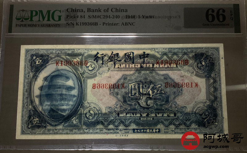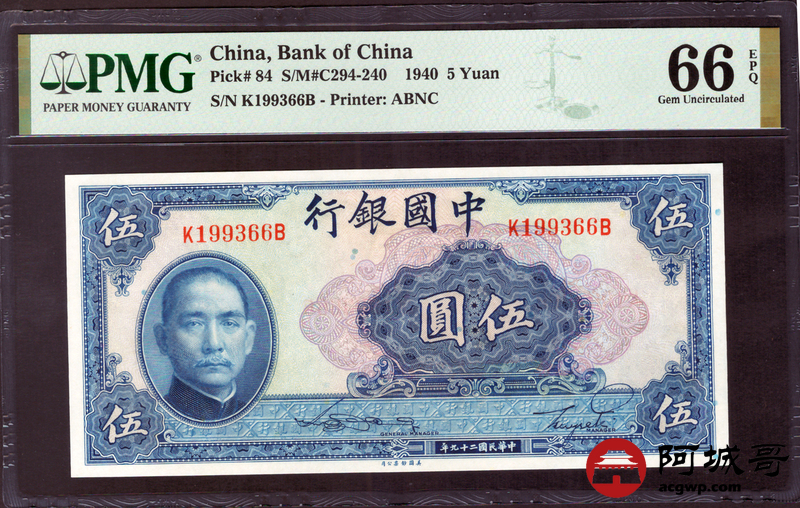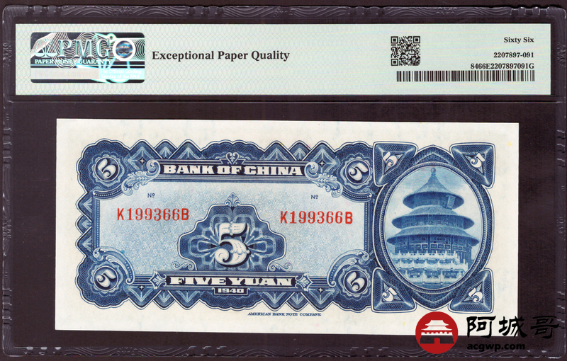 Lot:24 民国29年 中国银行 伍圆 PMG 66EPQ 好号无47