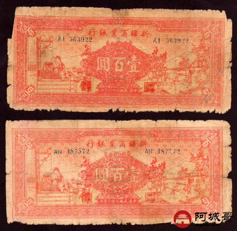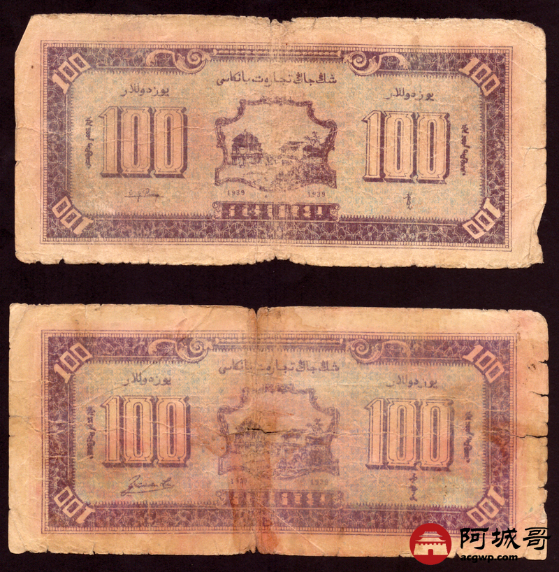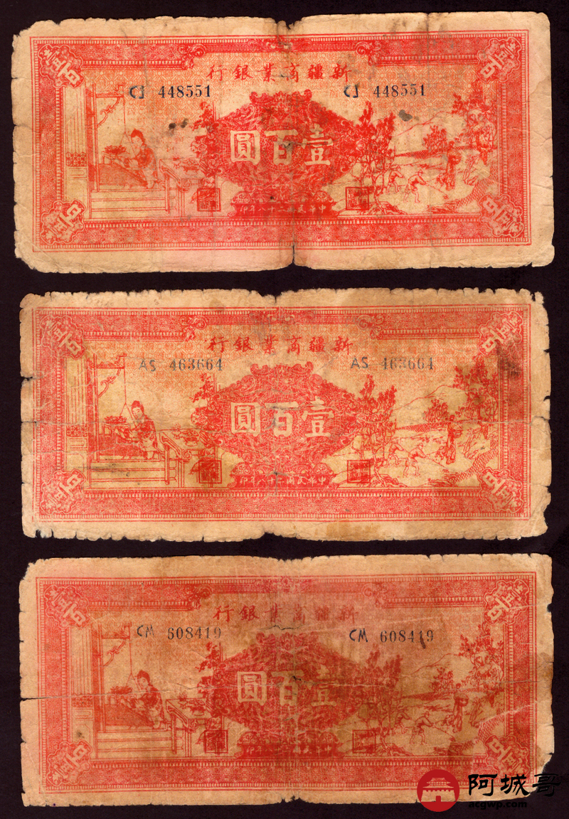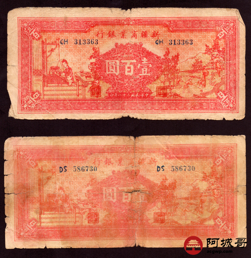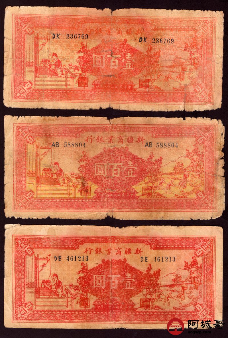 Lot:48 民国二十八年 新疆商业银行壹佰圆 十张 5至6成新