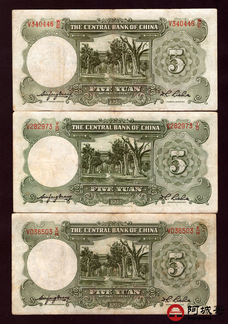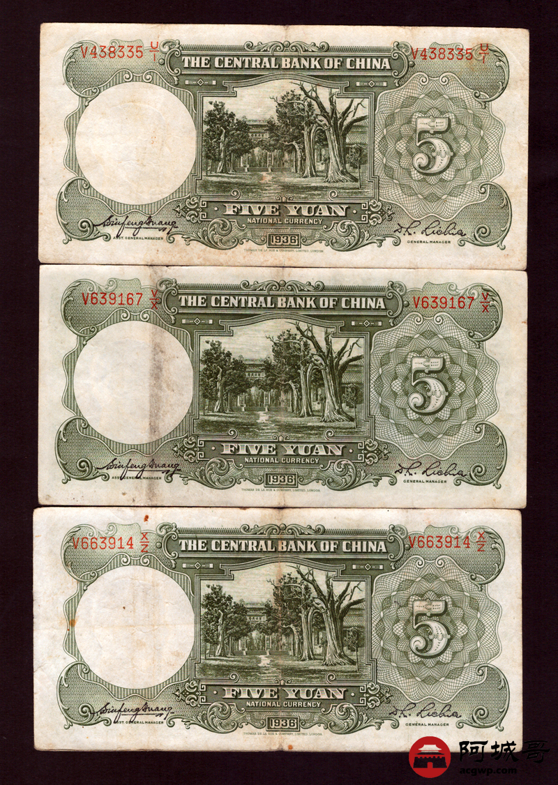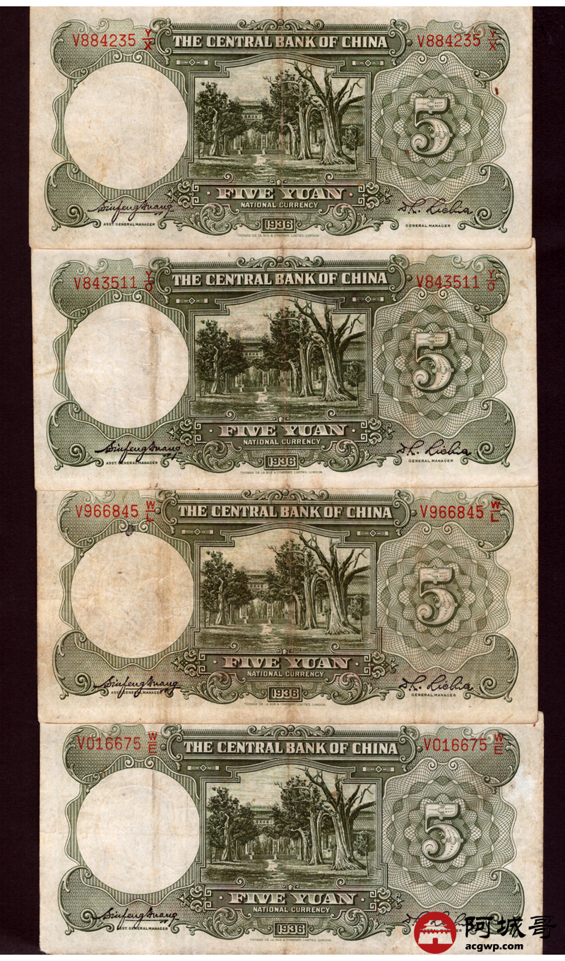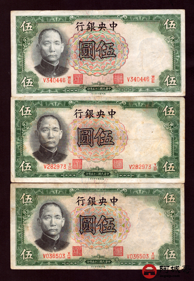 Lot:43 民国25年 中央银行 伍圆 10张 7至72成新