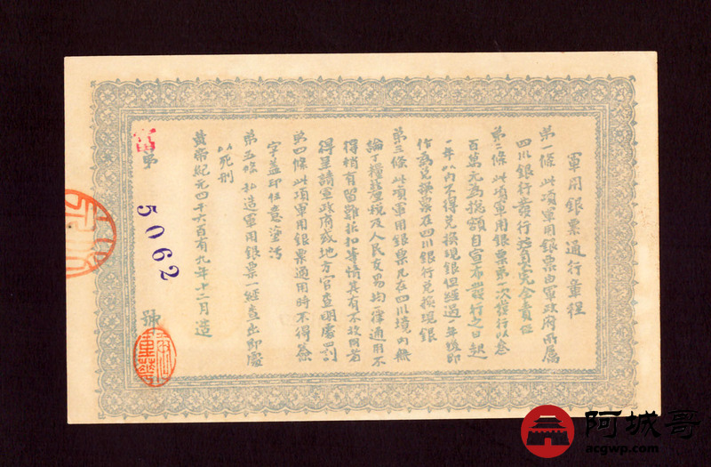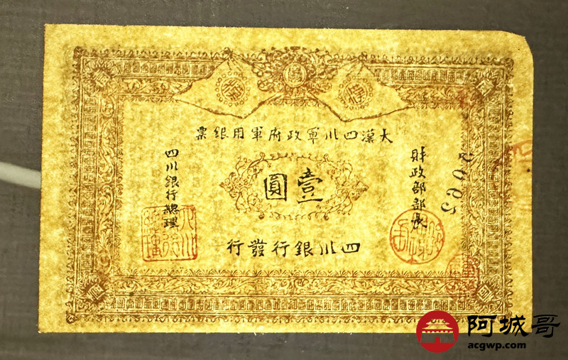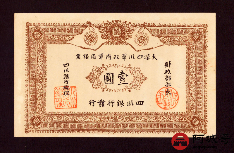Lot:41 大漠四川军政府军用银票 壹圆 同期老假票 94成新
