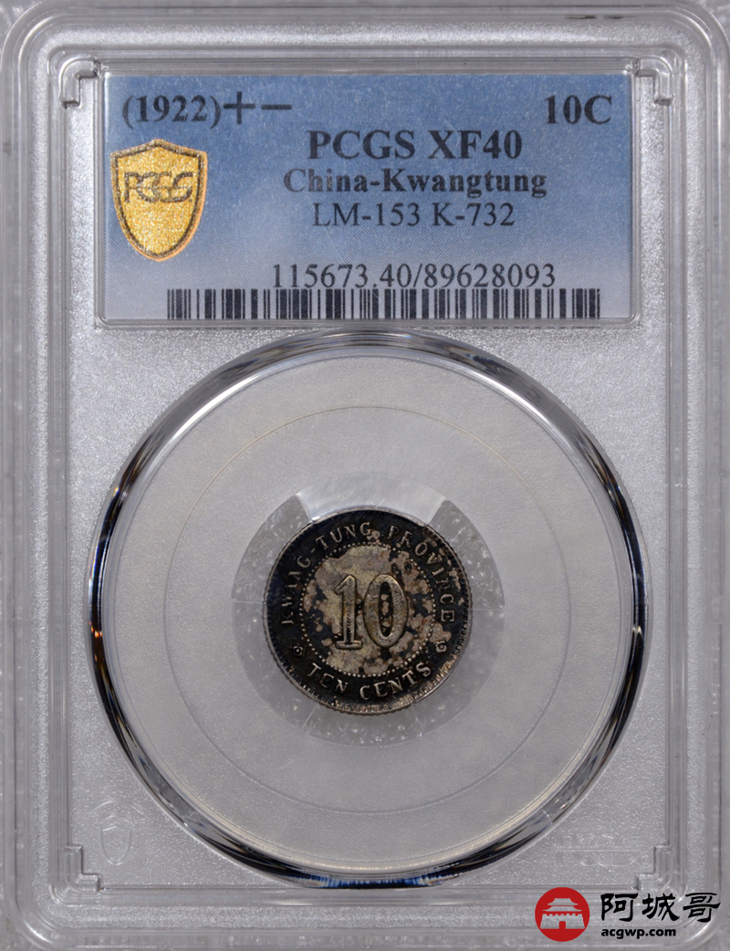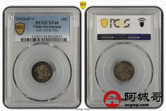 Lot:23 酱彩 广东十一年壹豪 PCGS XF40