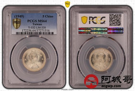 Lot:24 原光 民国十八年广东孙像贰豪 PCGS MS64