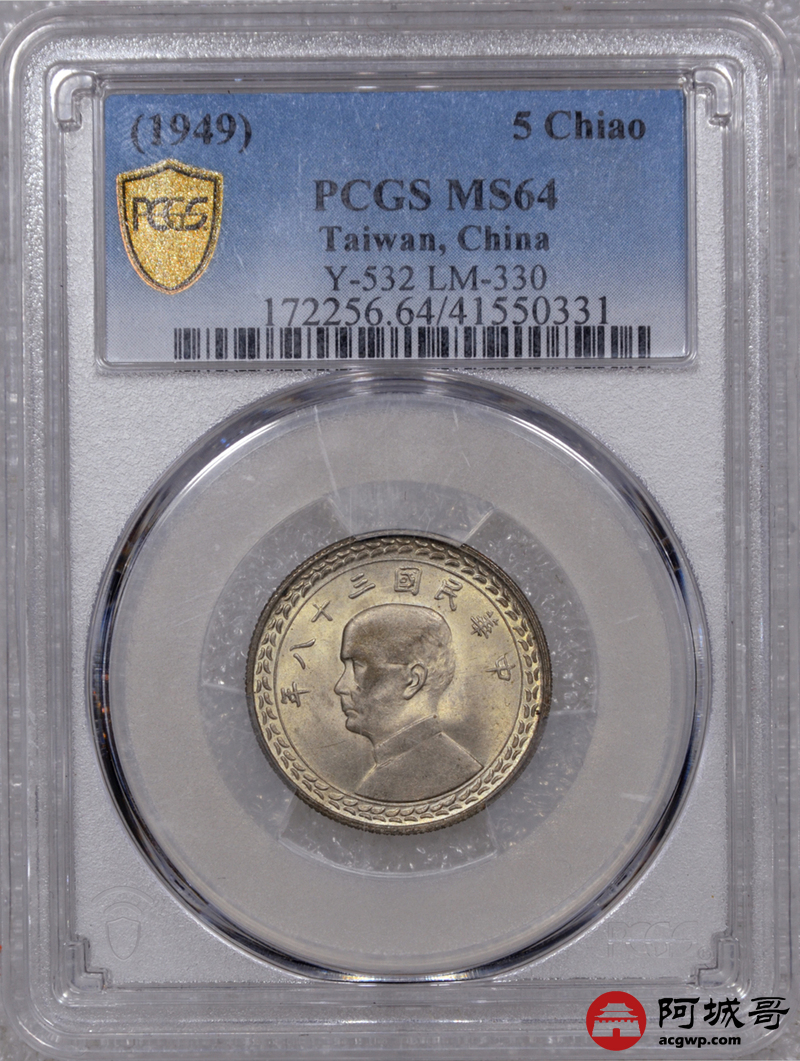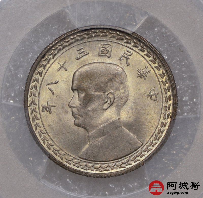 Lot:26 原光 民国十八年广东孙像贰豪 PCGS MS64