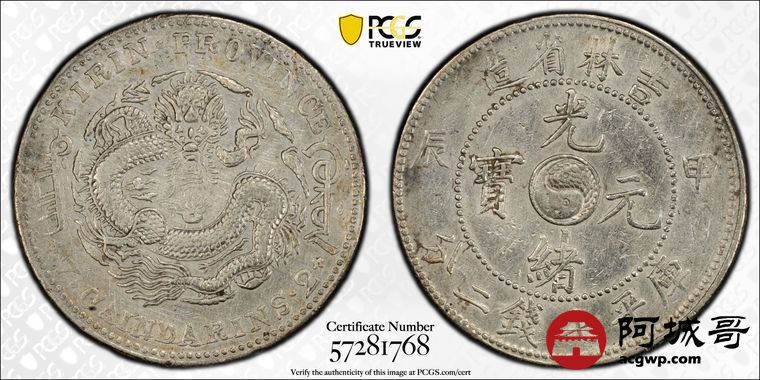 Lot:8 深打吉林甲辰七钱二分 PCGS XF
