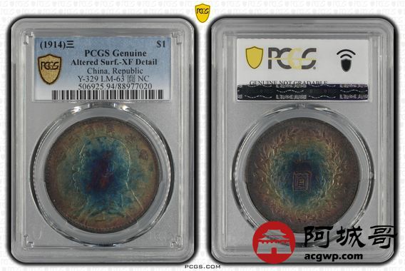 Lot:30 炫丽五彩三年大头壹圆 PCGS XF