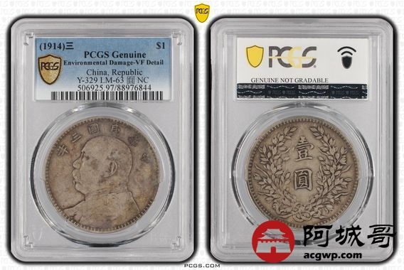 Lot:41 原味老包浆 三年大头壹圆 PCGS VF