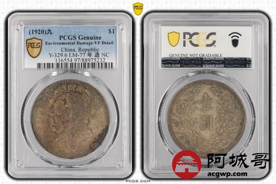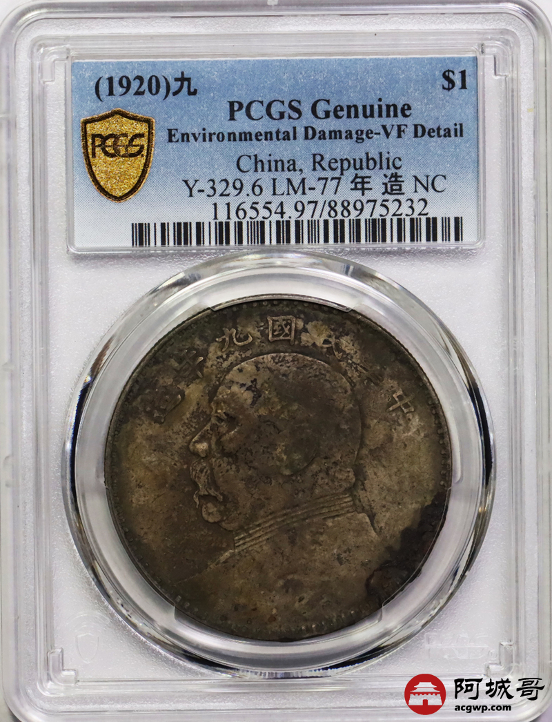 Lot:43 原味老包浆 九年大头壹圆 PCGS VF